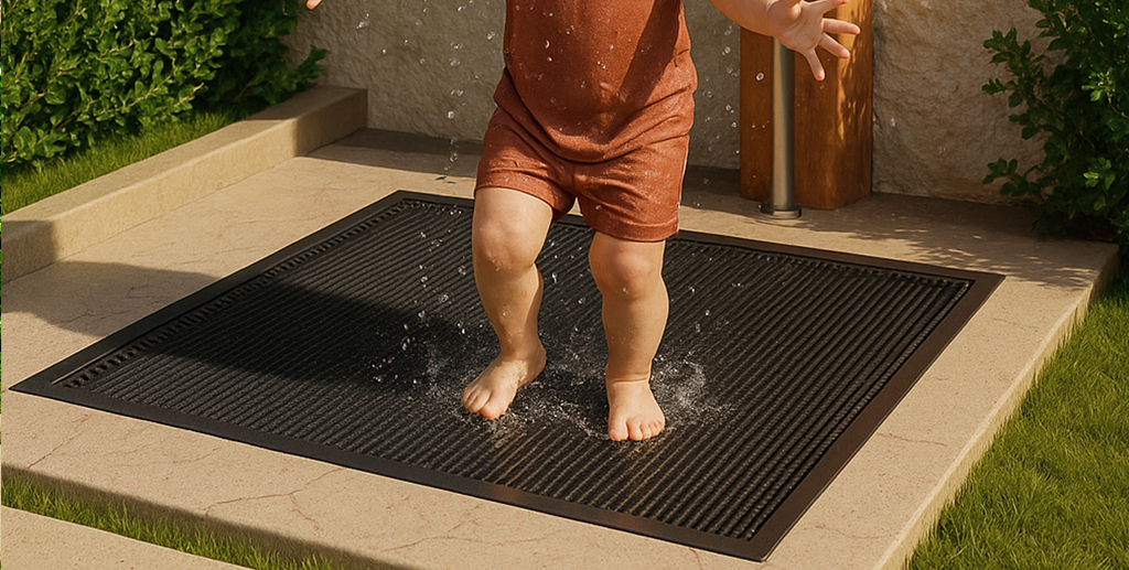 Modelo antiderrapante Fundimais com grelha integrada, robustez e acabamento discreto para sua casa de máquinas ou piscina.